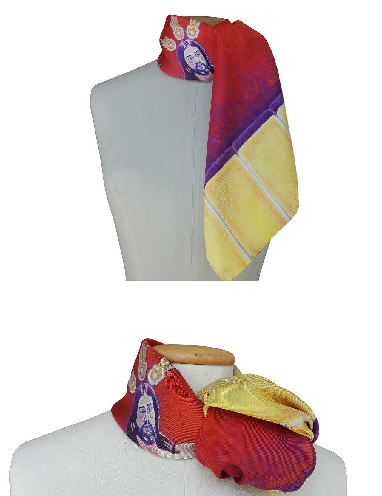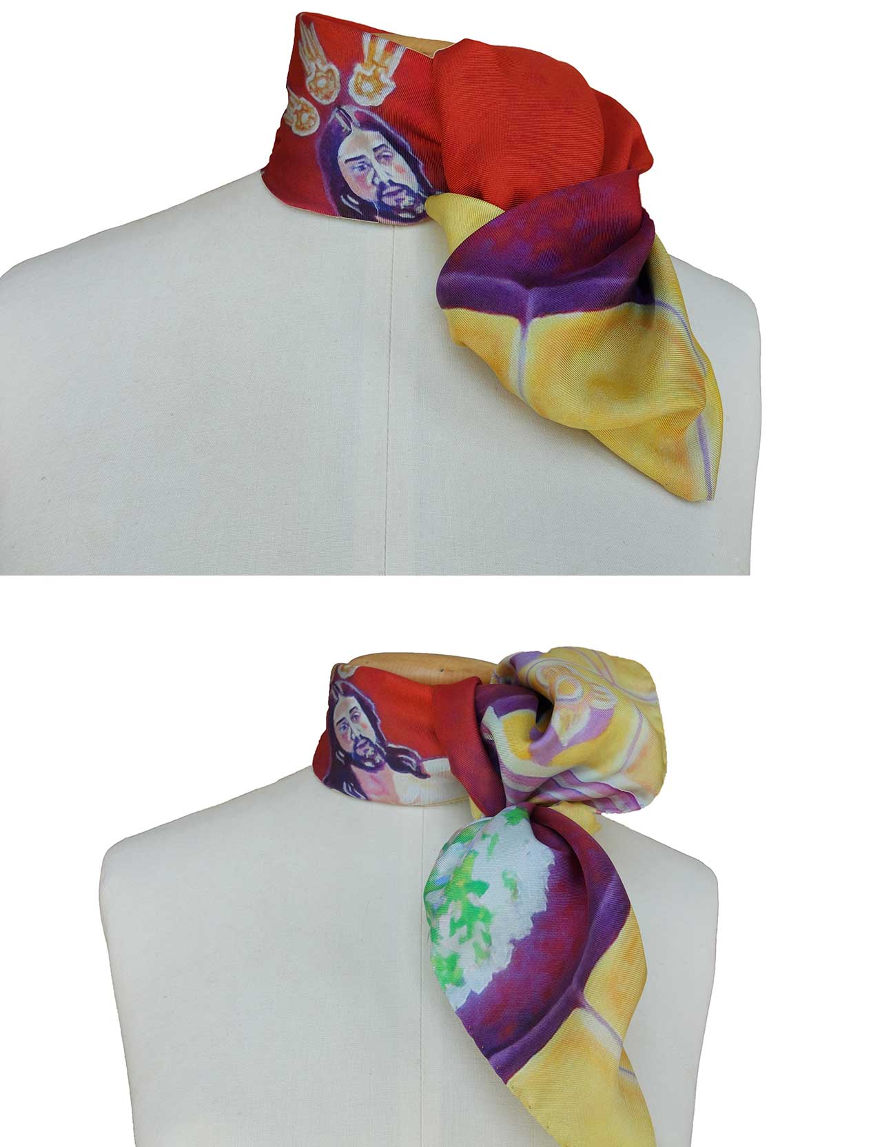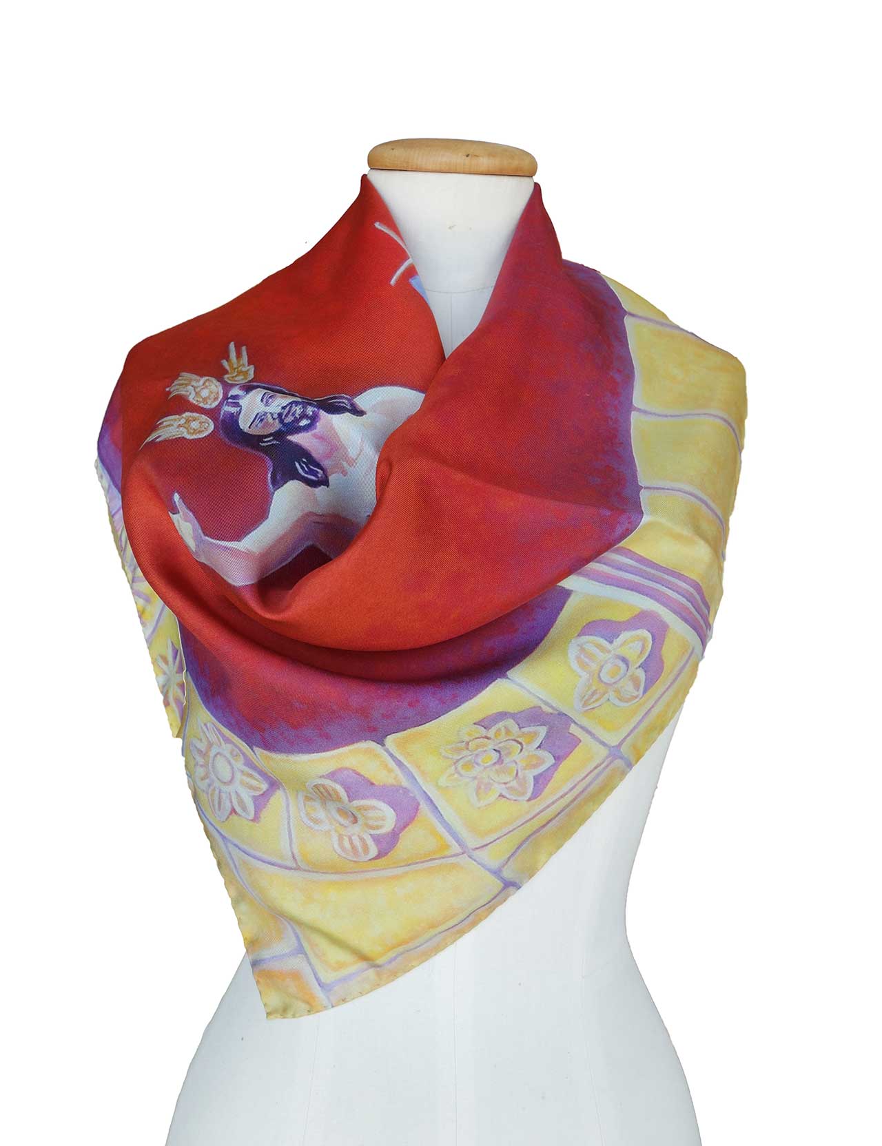 Realizados en 100% seda italiana de alta calidad de acabado suave y delicada caída. Todos nuestros pañuelos están creados a partir de una obra de arte original. A partir de ella, se procede al minucioso diseño de cada modelo para su estampación en seda, en la región de Como-Milán.