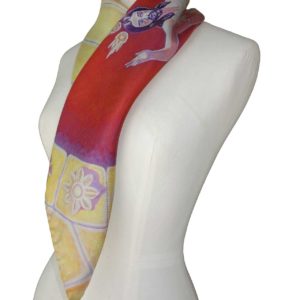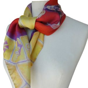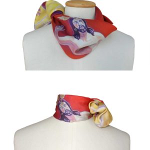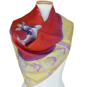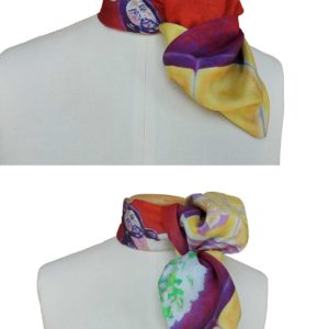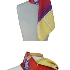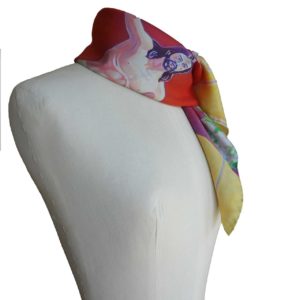 Realizados en 100% seda italiana de alta calidad de acabado suave y delicada caída. Todos nuestros pañuelos están creados a partir de una obra de arte original. A partir de ella, se procede al minucioso diseño de cada modelo para su estampación en seda, en la región de Como-Milán, reconocida internacionalmente por la extraordinaria calidad de producción de sus sedas y acabados de las prendas. Una vez impresa, se procede, allí también, a cortar cada pañuelo y posterior enrollado de los bordes y su cosido a mano.